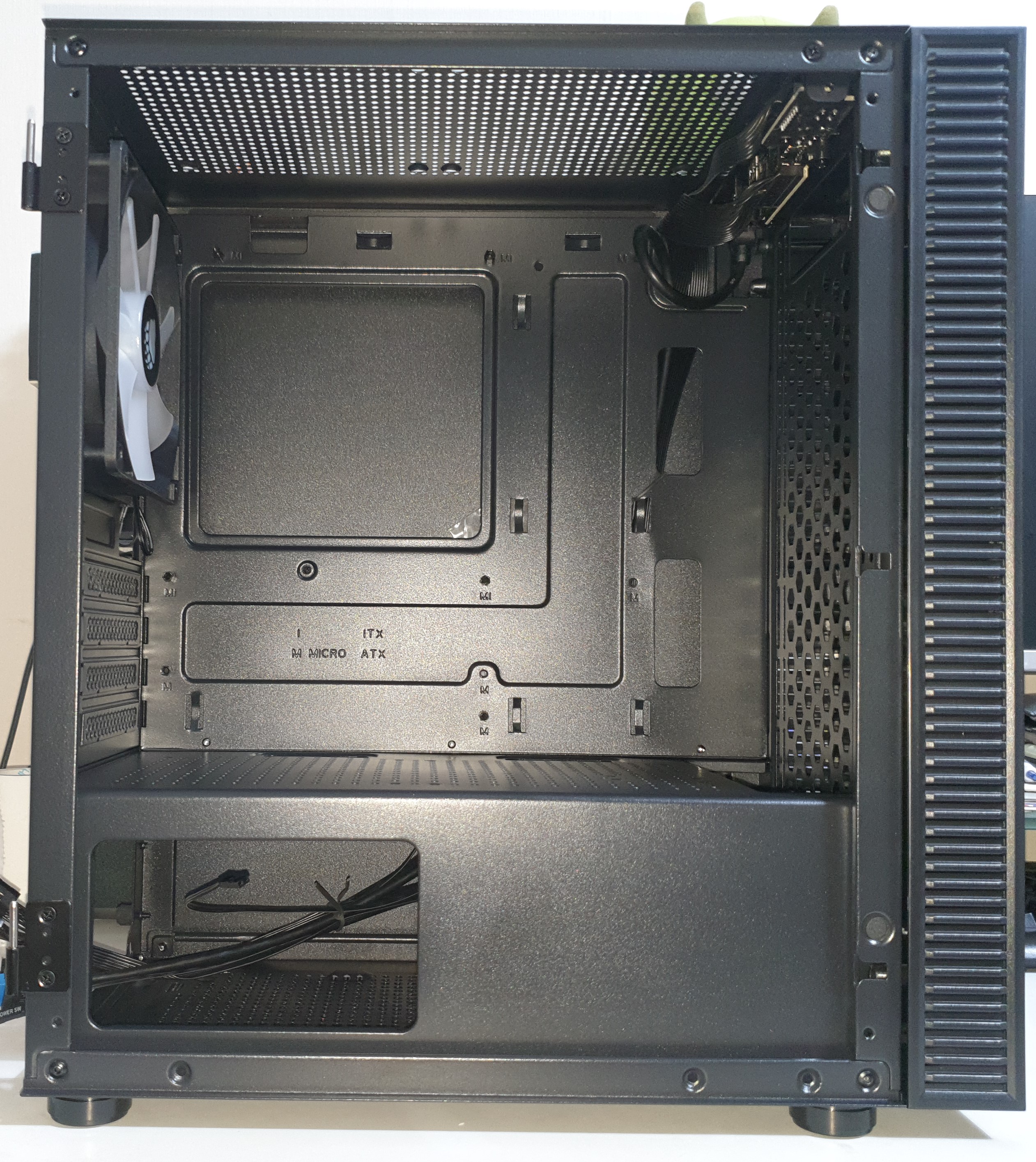m-ATX 사이즈의 메인보드를 활용해 PC를 설치한 모습입니다.
