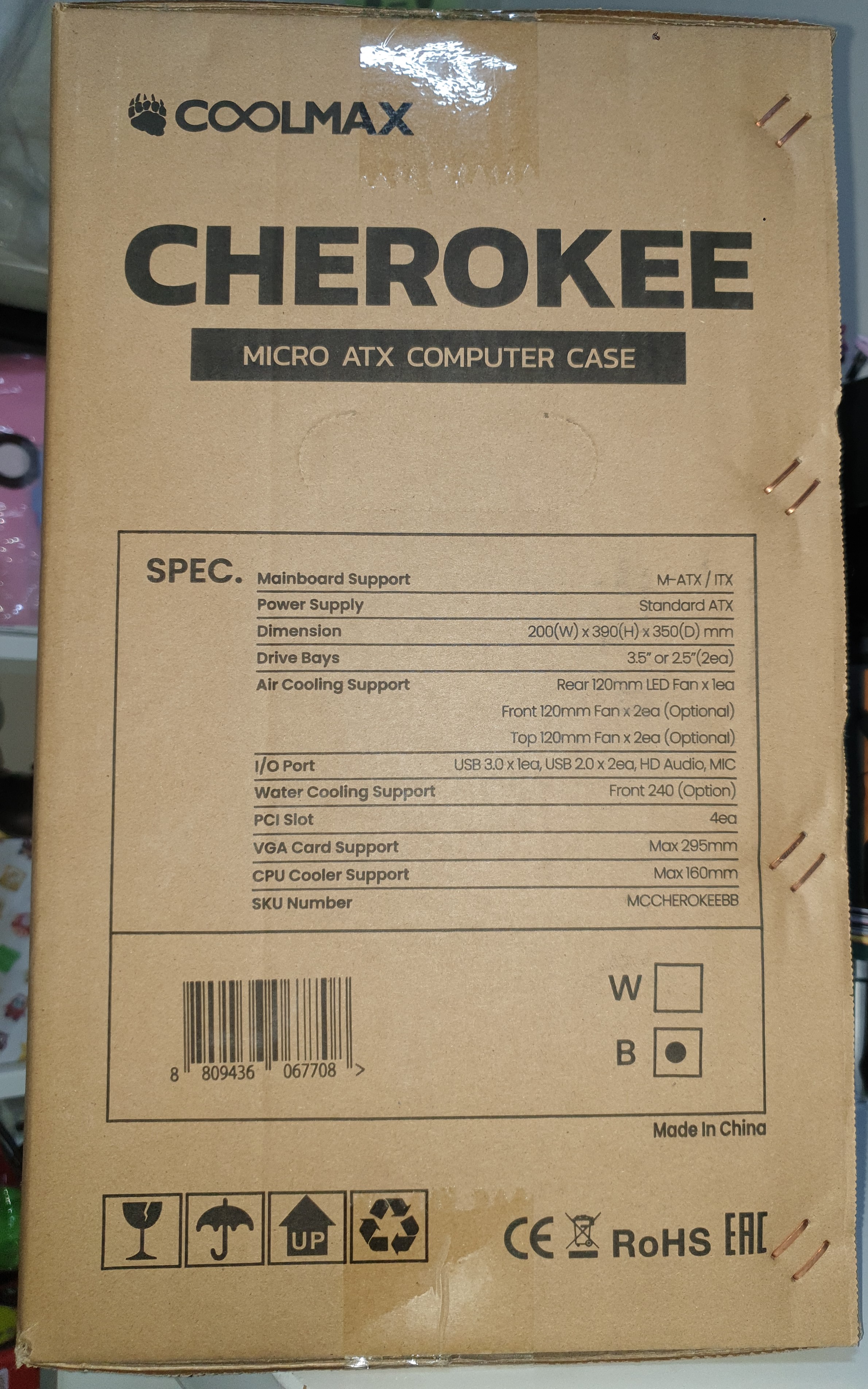 마이크로닉스 쿨맥스 체로키 케이스의 제품 상자 사진입니다.
