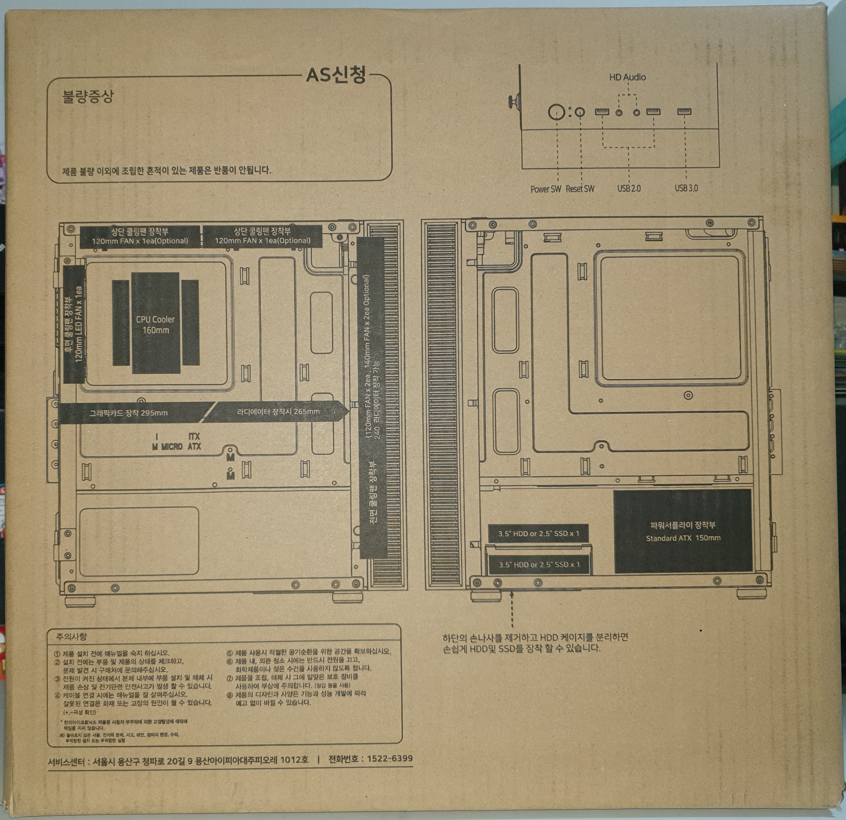 (하드베이 제거시 290mm의 PSU 호환 / 수랭쿨러 장착시 최대 270mm의 그래픽카드 호환)