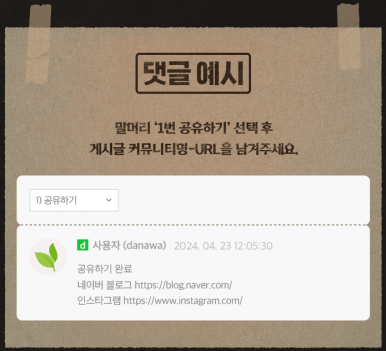 공유한 URL을 남기면 되는 간단한 이벤트!