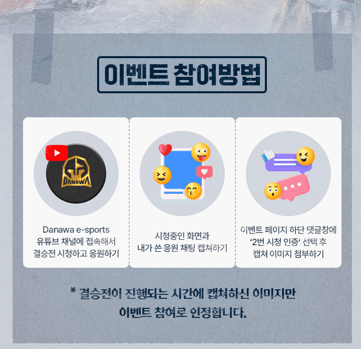 *결승전이 진행되는 시간에 캡쳐하신 이미지만 이벤트 참여로 인정합니다.