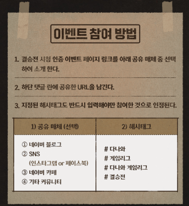 1.결승전 시청 인증 이벤트 페이지 링크를 공유 매체에 소개한다.