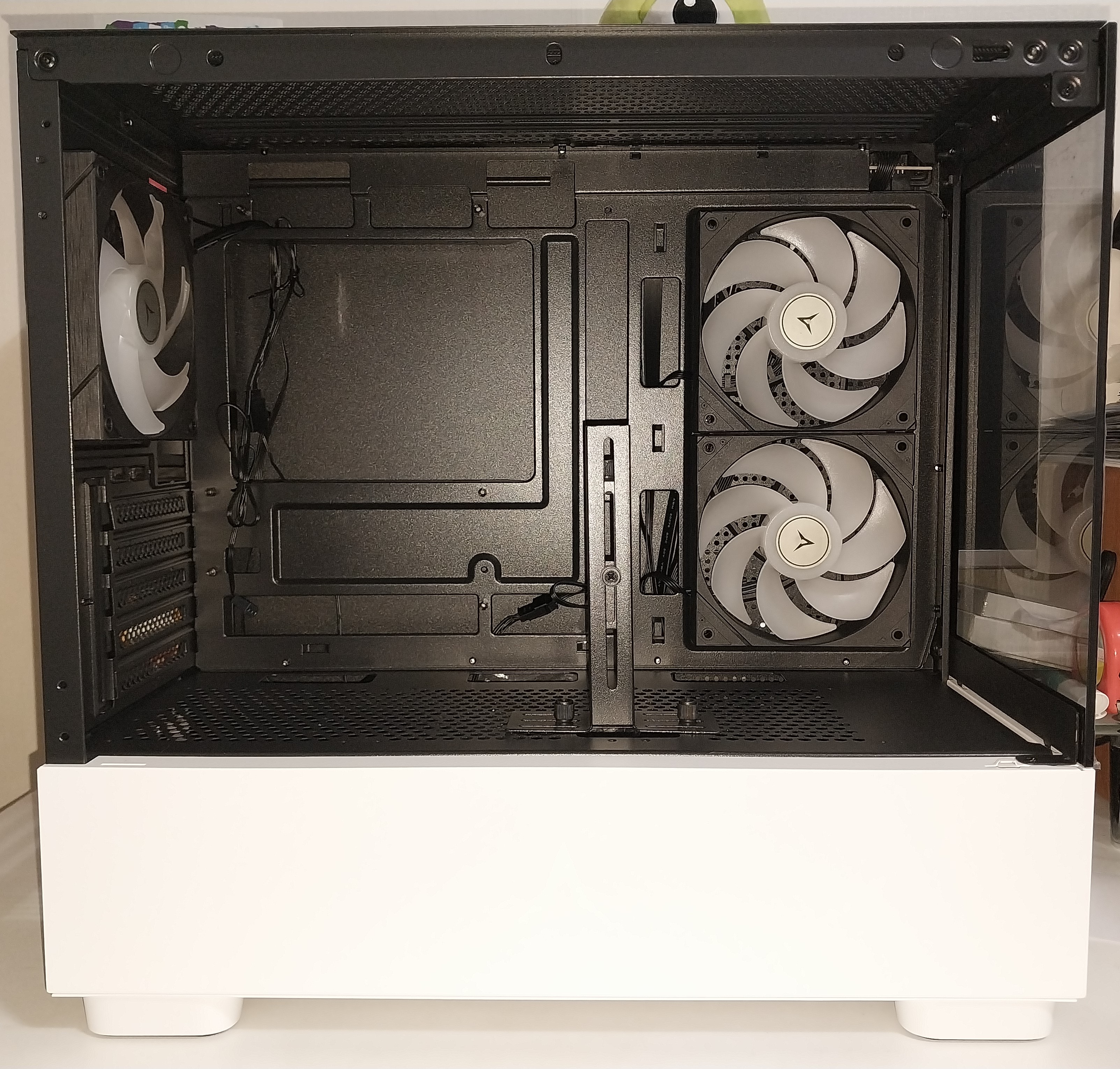 그래픽카드 지지대 미설치 시, 3개의 120mm 팬을 장착할 수 있습니다.