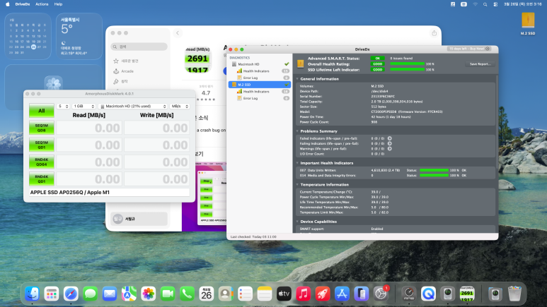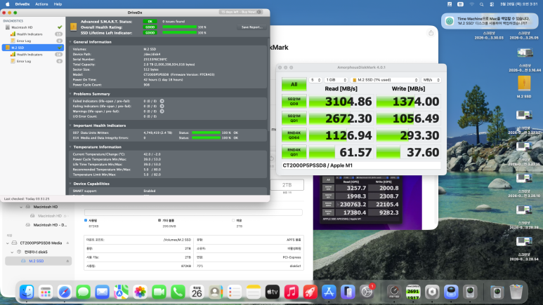 SSD의 온도가 42.0℃까지 떨어진 모습도