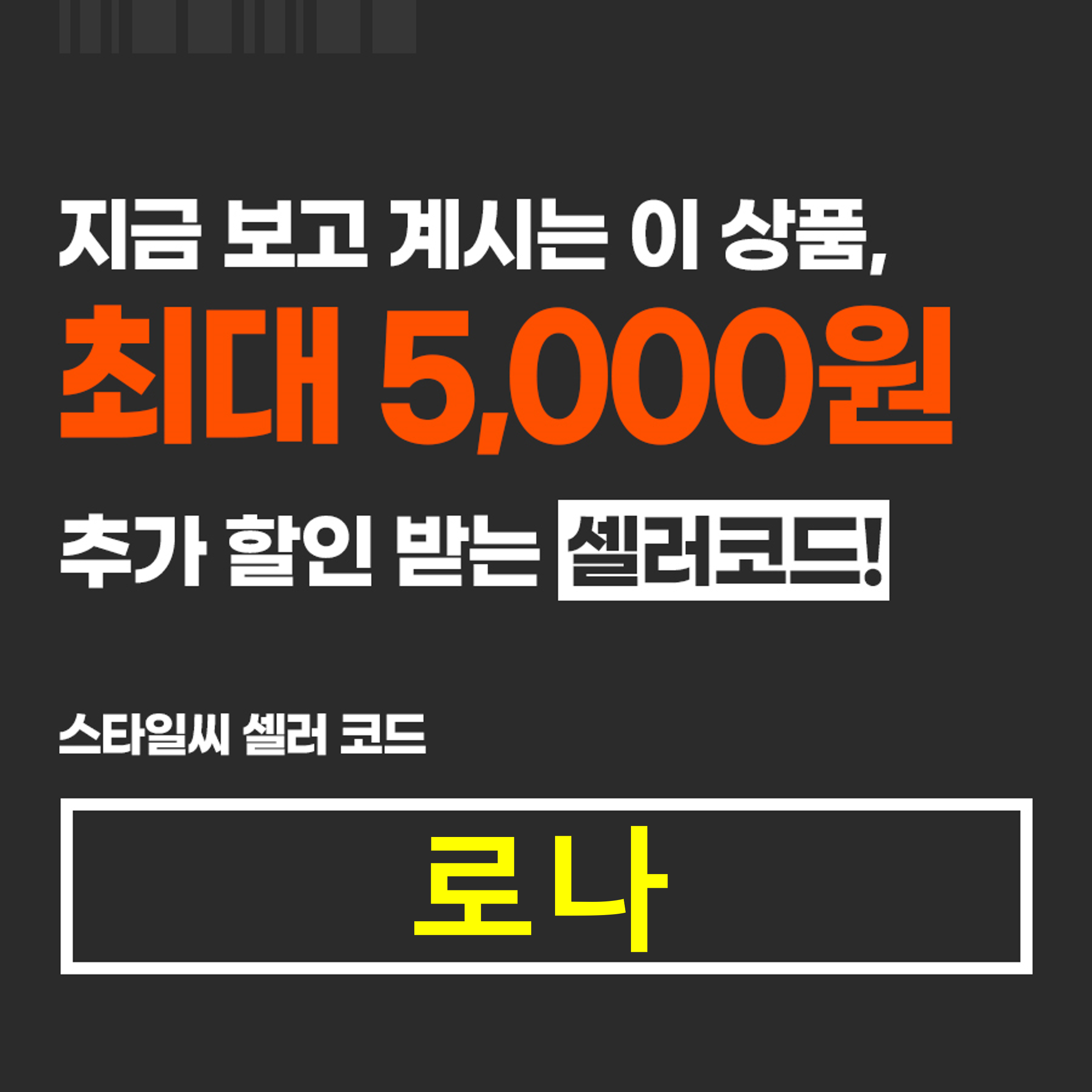 본 제품 구매를 희망하시는 분은 스타일씨(stylec)에서 제 스타일씨셀러코드 로나를 입력하시면,