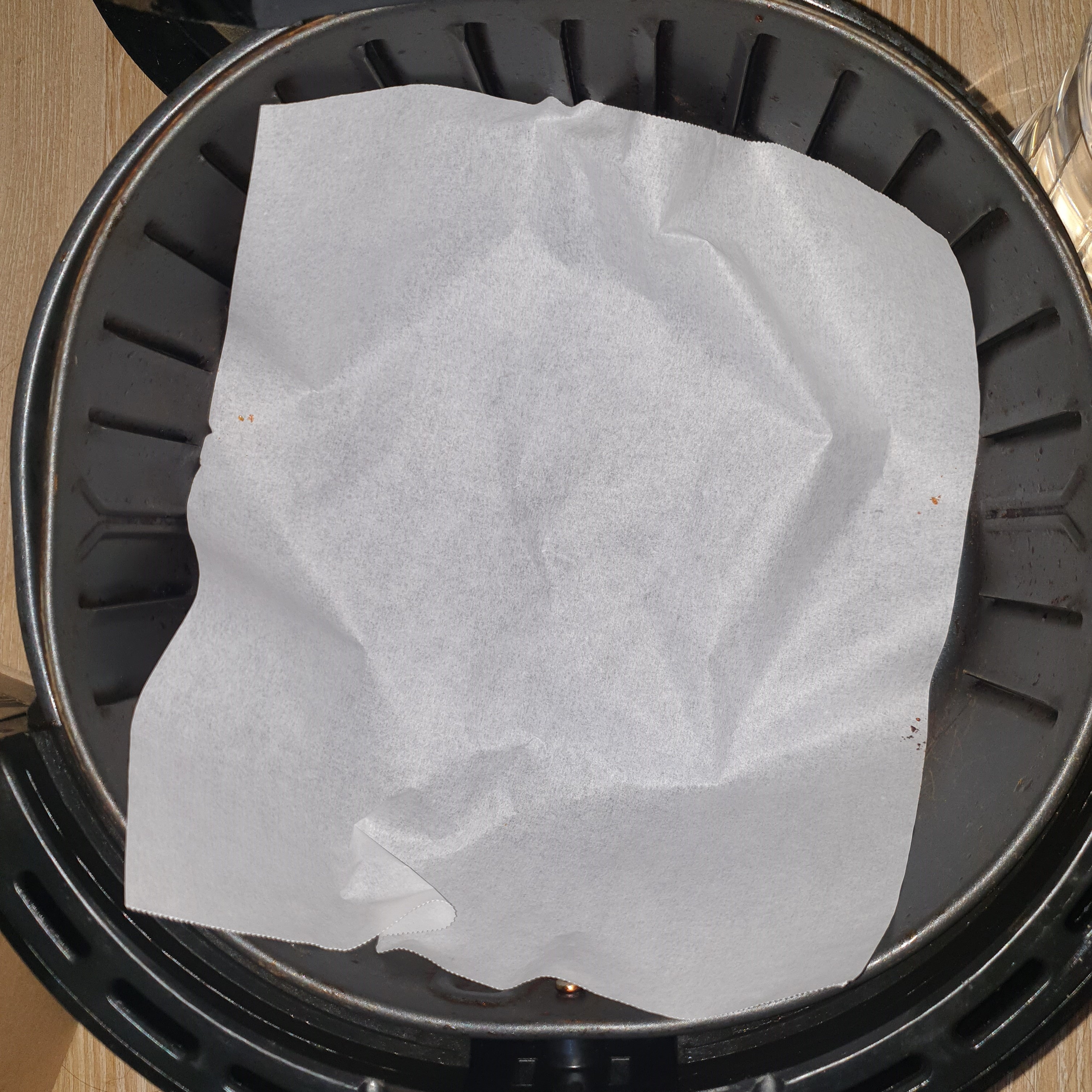 바른맘 에어프라이어종이호일을 에어프라이어에 깔아서 사용하는 사진입니다.