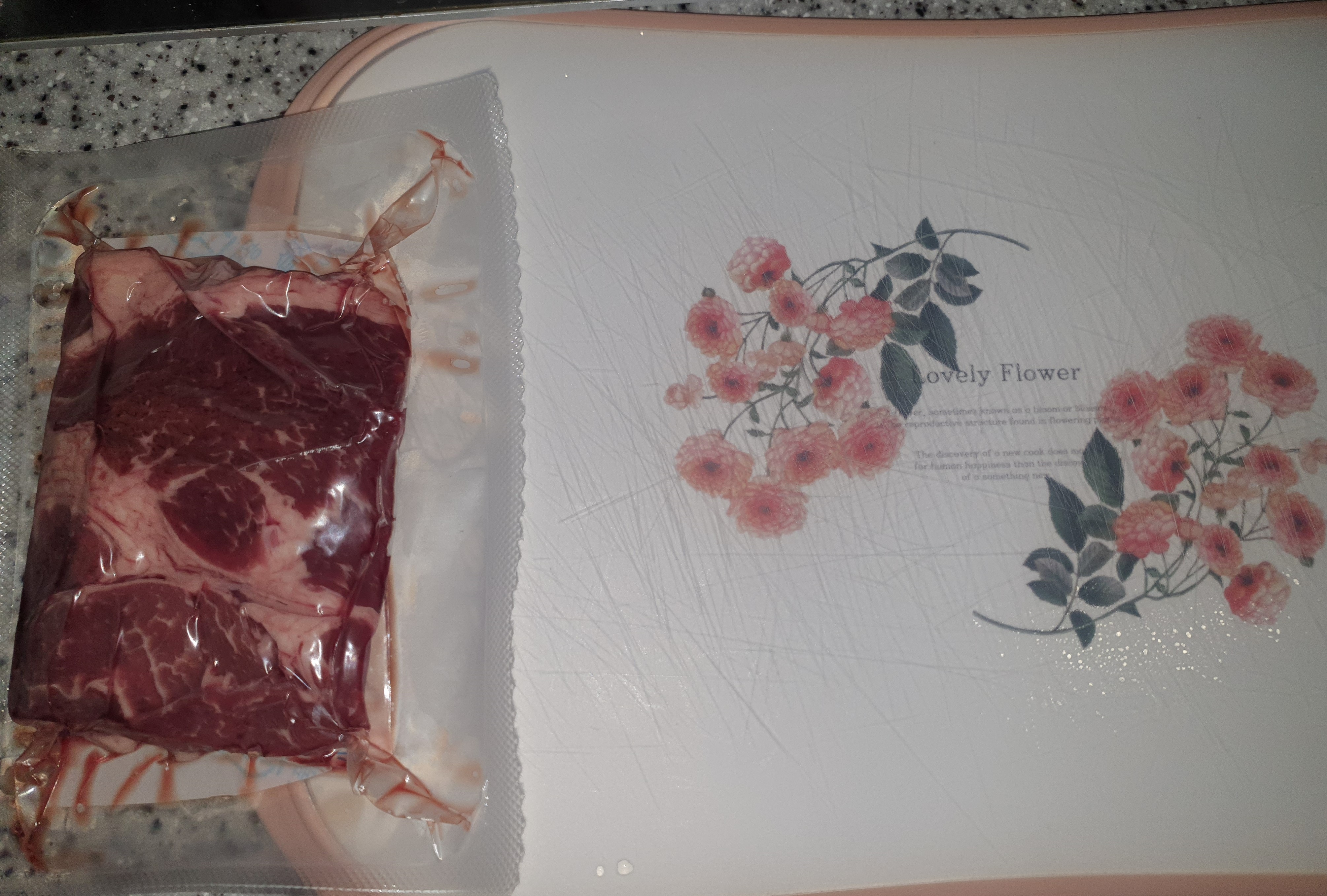 바른맘 에어프라이어종이호일을 도마 위에 올려놓고 고기 손질을 하는 사진입니다.