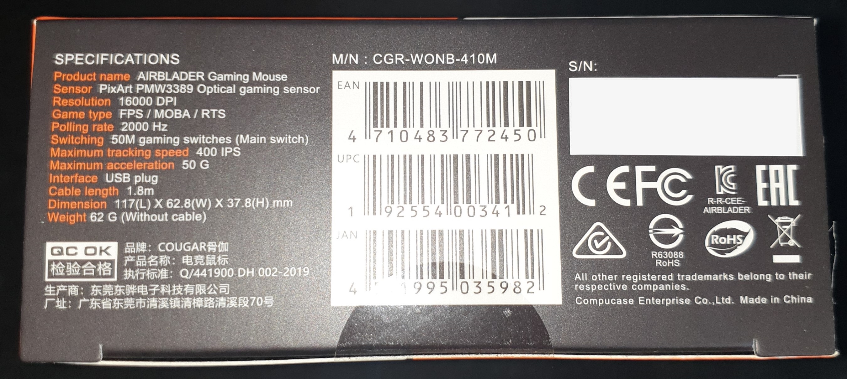 초경량 게이밍 마우스, COUGAR AIRBLADER!
