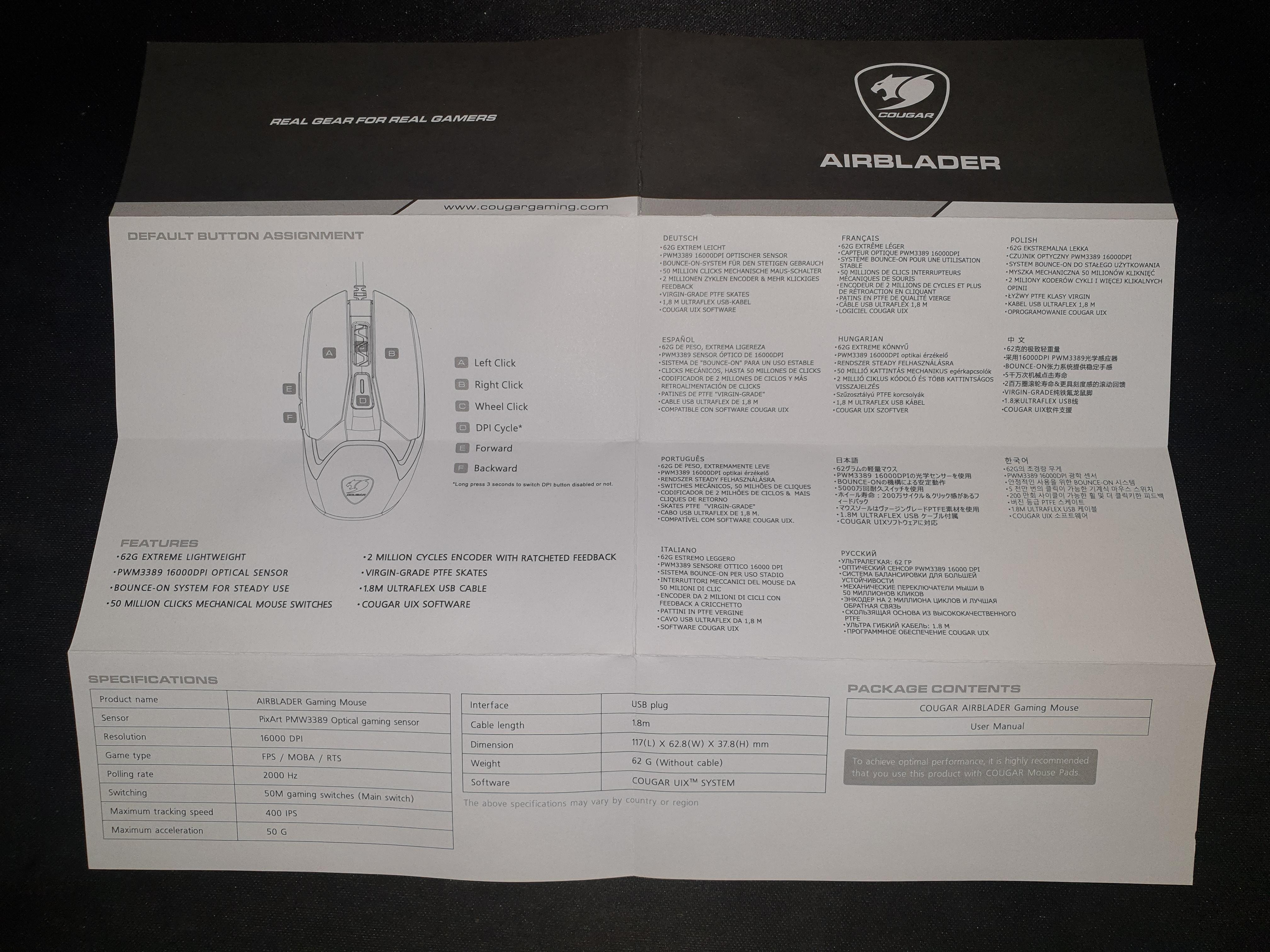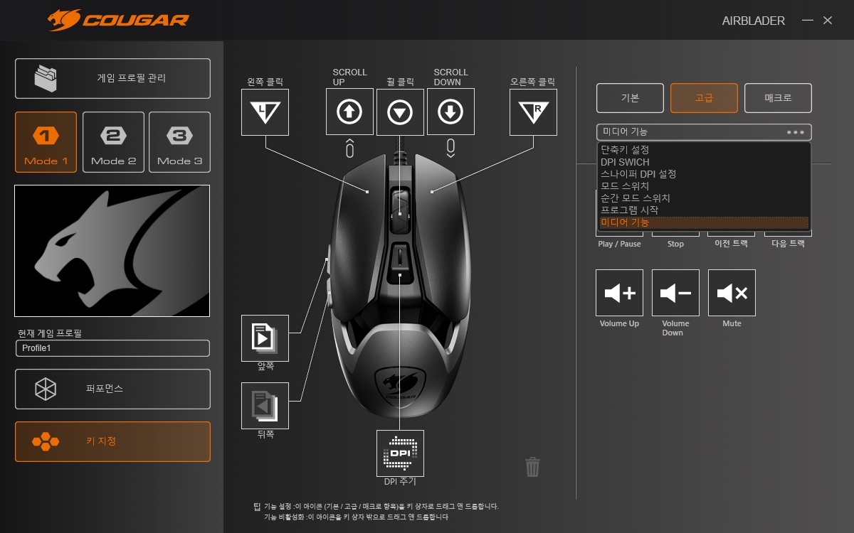 DPI+5버튼 구성의 COUGAR AIRBLADER.