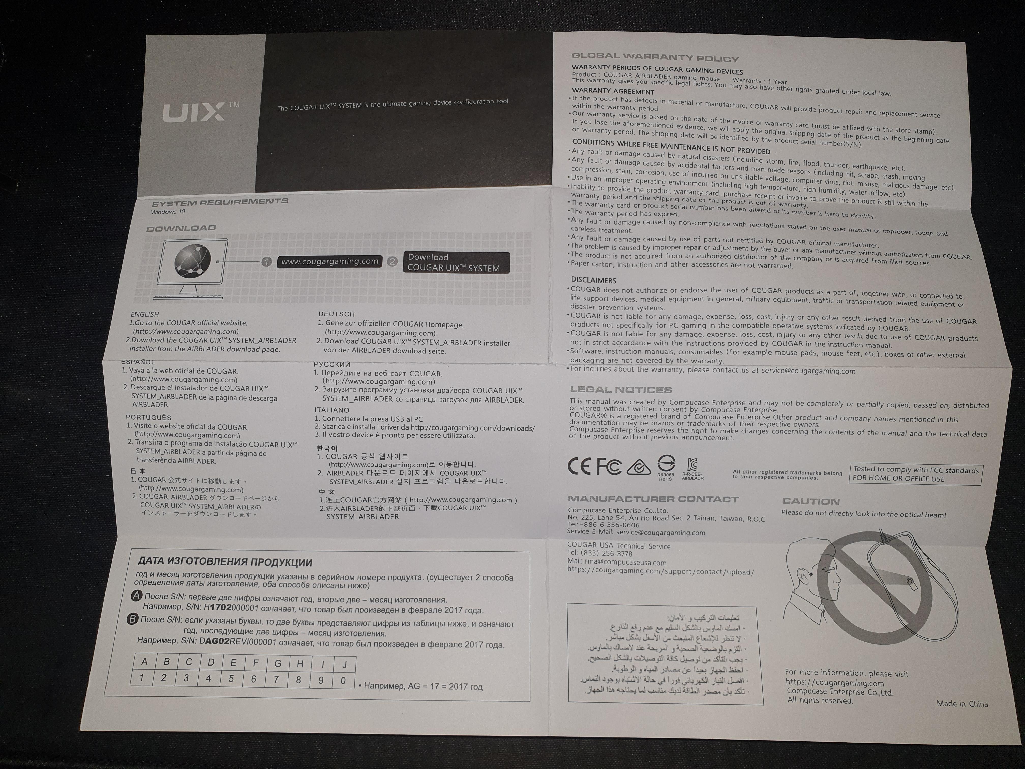 COUGAR AIRBLADER 마우스를 사용해,